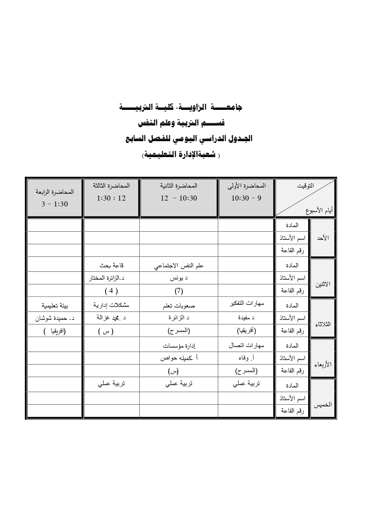 جدول قسم التربية و علم النفس (جميع الشعب)