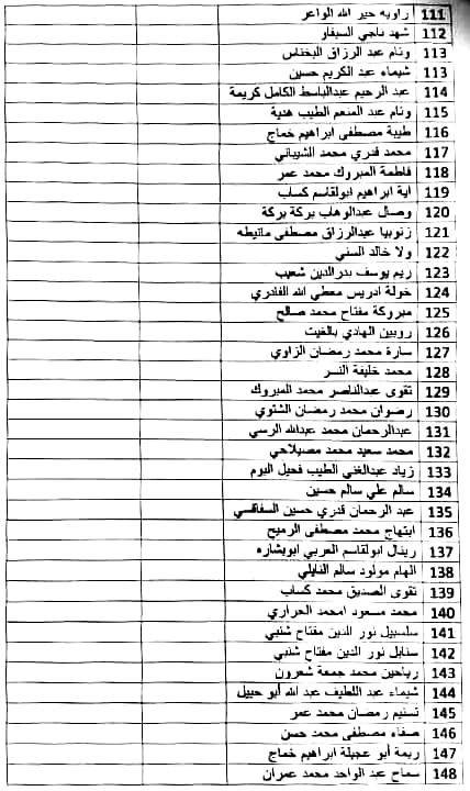 على أن يتم إعلان قوائم أسماء باقي الطلاب عقِبَ إتمام إجراءات التسجيل لِكلّ مجموعة بالتتابع .