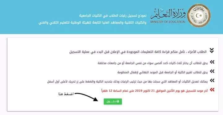 * طريقة التسجيل بمنظومة تسجيل رغبات الطالب في التسجيل بالكليات والجامعية والتقنية والمعاهد العليا ...