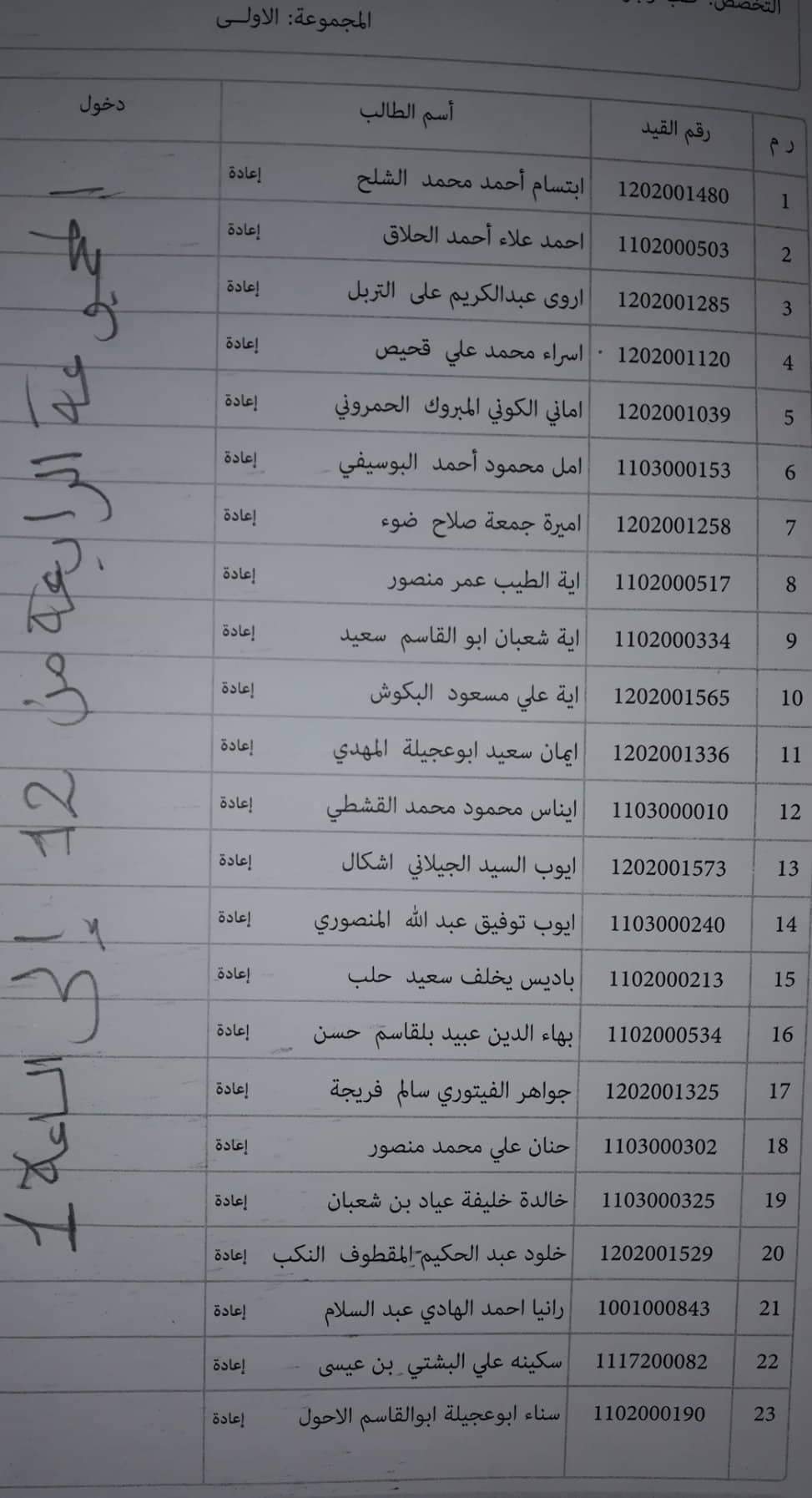 مجموعات العملي ليوم الأحد الموافق 29 / 12 / 2019 لماده علاج اللثه يرجى الحضور على تمام الساعة 8:30 صللأهمية الالتزام بالمجموعات