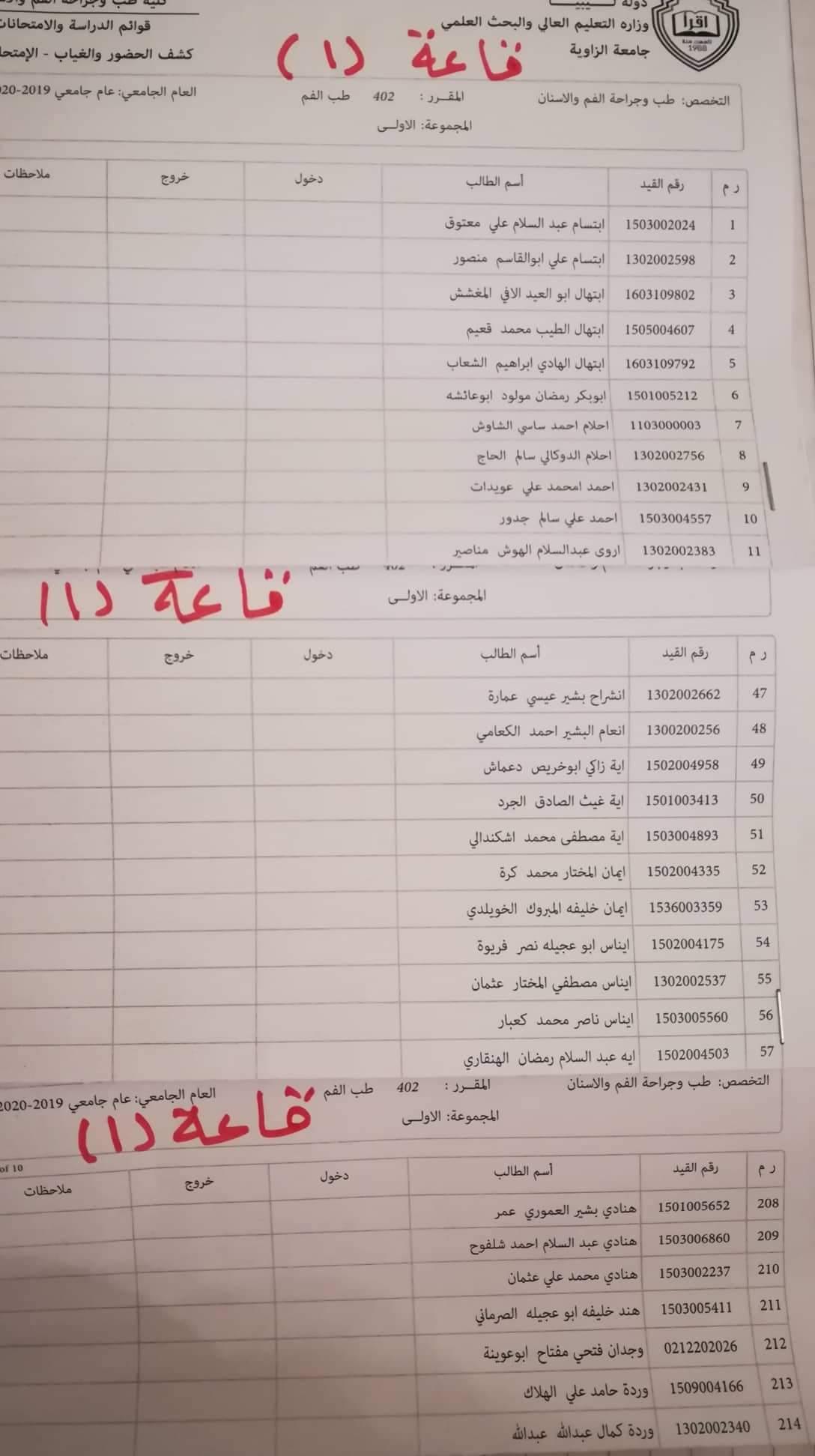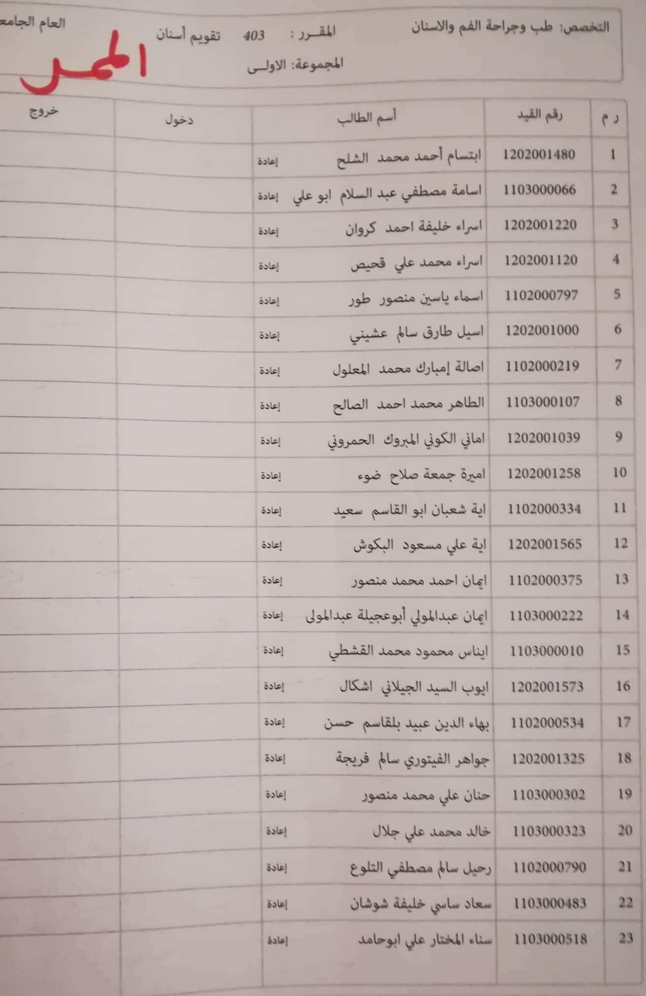توزيع القاعات لطلبة السنه الرابعة الدفعة 14 والتكميلي ليوم الثلاثاء الموافق 18 / 2 / 2020 للامتحان مادة تقويم الأسنان على تمام الساعة 9