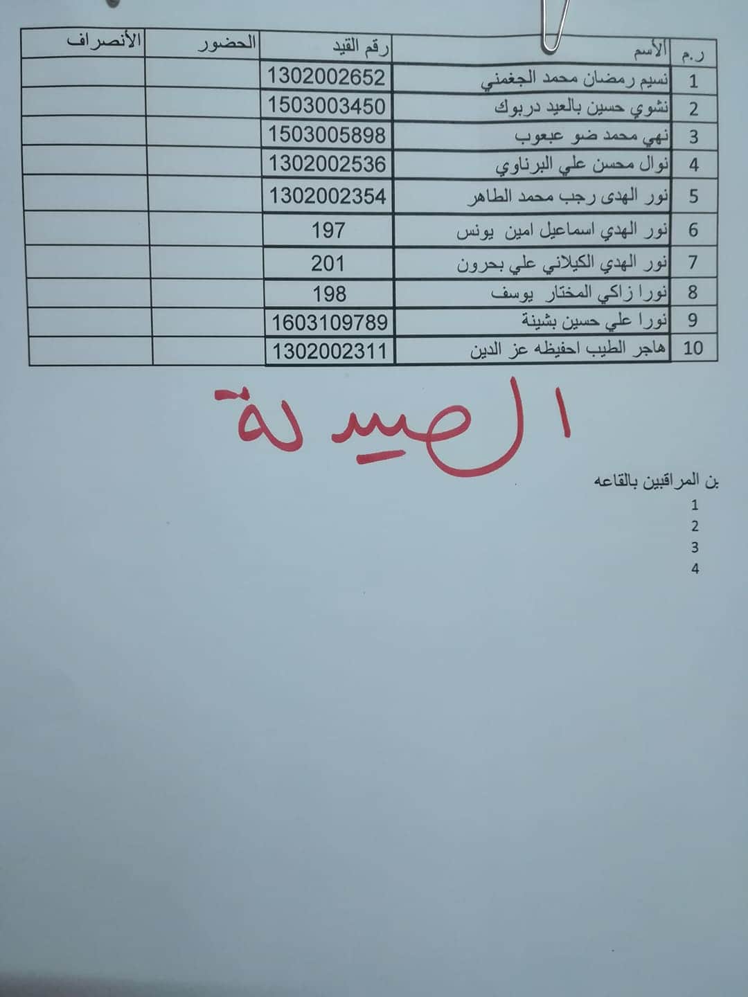 قوائم توزيع الطلبه للامتحان مادة طب الأطفال بقاعات الأسنان والصيدلة