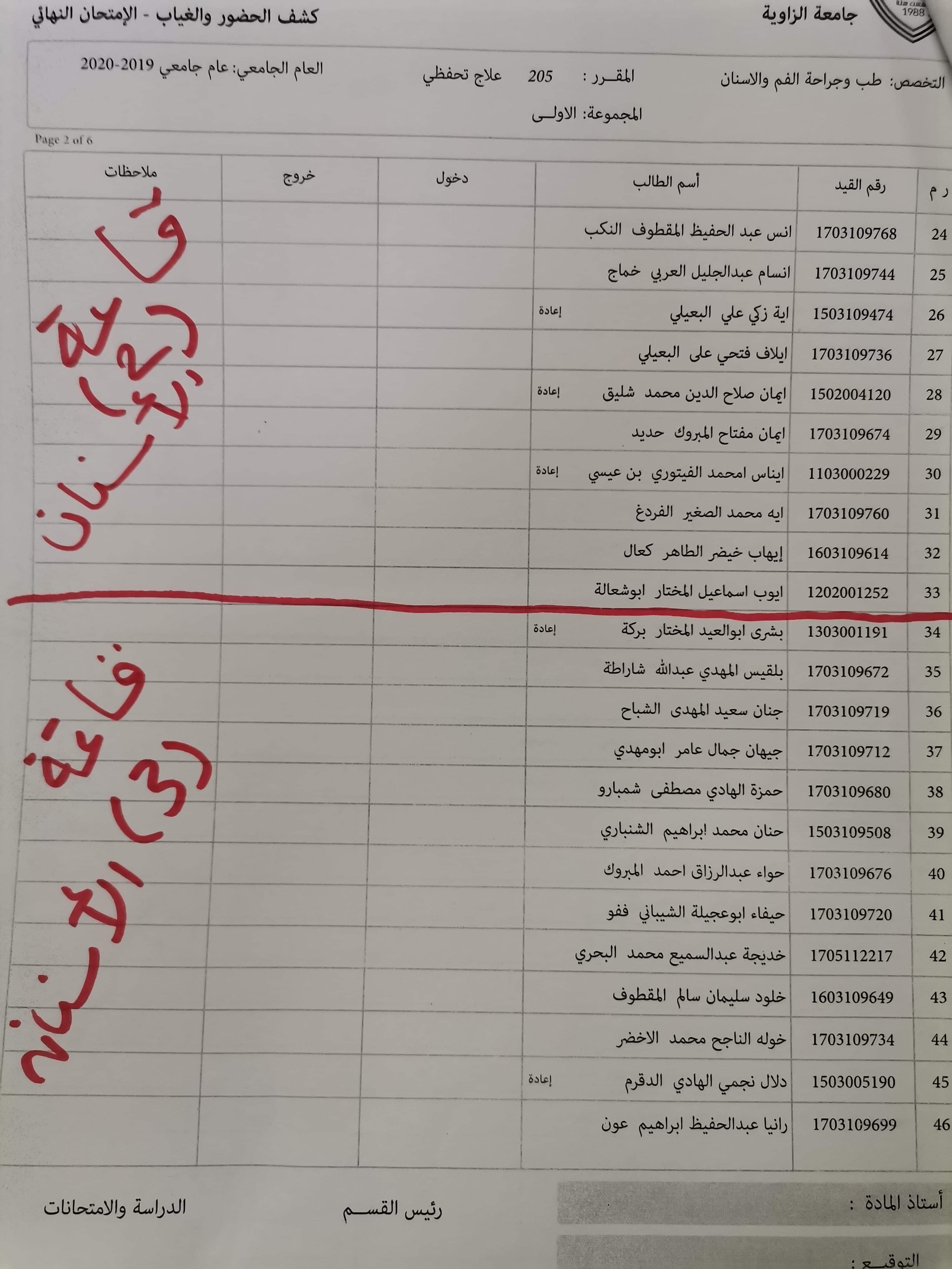 قوائم توزيع القاعات للامتحان يوم السبت الموافق 26/9/ 2020 على تمام الساعه 9 لمادة العلاج التحفظي للسنه الثانيه الدور الاول للعام الجامعي 2019 / 2020 بالتوفيق للجميع، يرجى الإلتزام بالإجراءات الوقائية