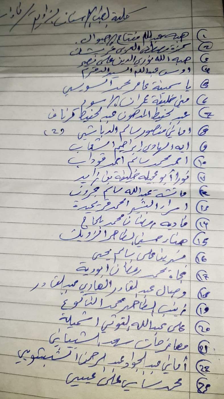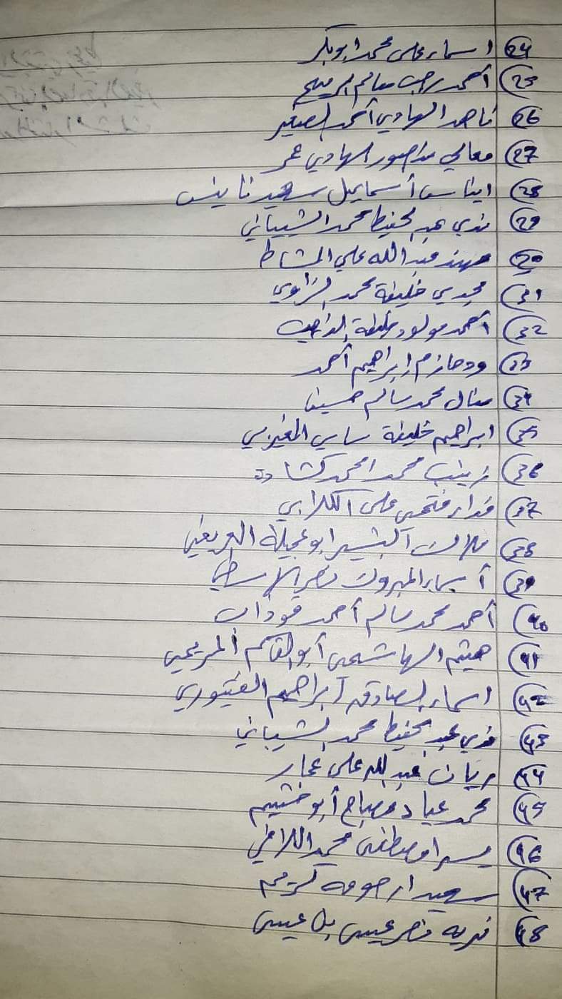 يطلب من الاتي أسمائهم ضروره مراجعة مكتب المسجل العام بالجامعه لاستلام افادات التخرج