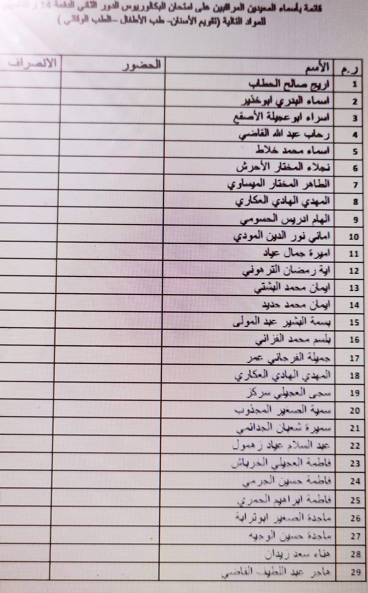 قائمة المعيدين المراقبين على امتحان الدور الثاني مادة طب الأطفال ليوم الثلاثاء القادم الموافق 8/ 12 / 2020 على تمام الساعه 9 يرجى الإلتزام بالحضور للأهمية