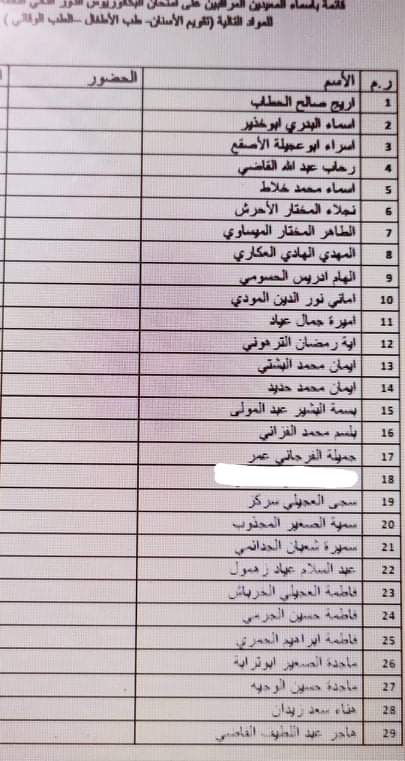 قائمة بأسماء المعيدين المراقبين على امتحان الدور الثاني لمادة الطب الوقائي