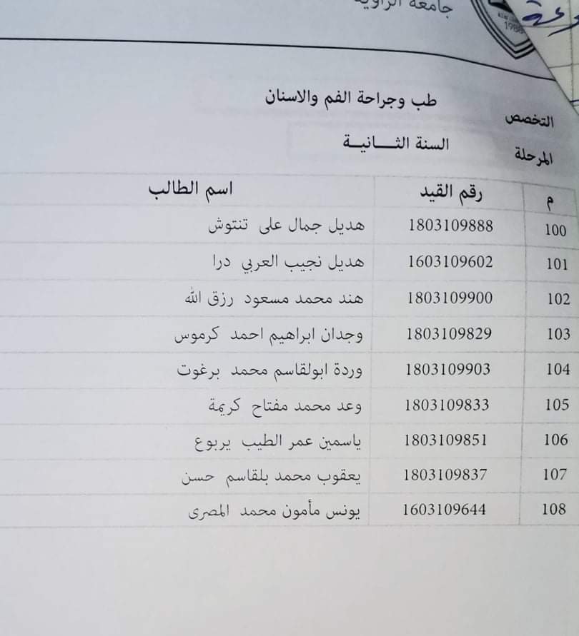 قوائم طلبه السنه الثانيه المجموعه الثانيه