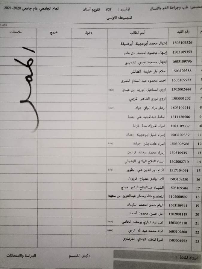 توزيع القاعات للامتحان الدور الأول السنة الرابعة الدفعه 15 والتكميلي ليوم الثلاثاء القادم الموافق 6/ 7 / 2021 على تمام الساعه 9 يرجى الإلتزام بالحضور قبل الامتحان بنصف ساعة والالتزام بالإجراءات الوقائية وإحضار بطاقة التعريف.