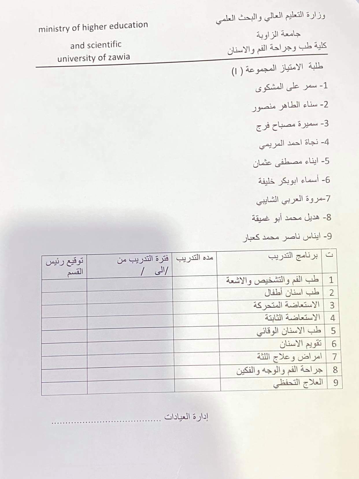 قوائم طلبة الامتياز الذين تم تجديد قيدهم واستكمال اوراق امتيازهم وتقسيم المجموعات لسنه الامتياز