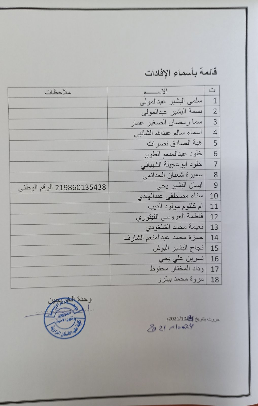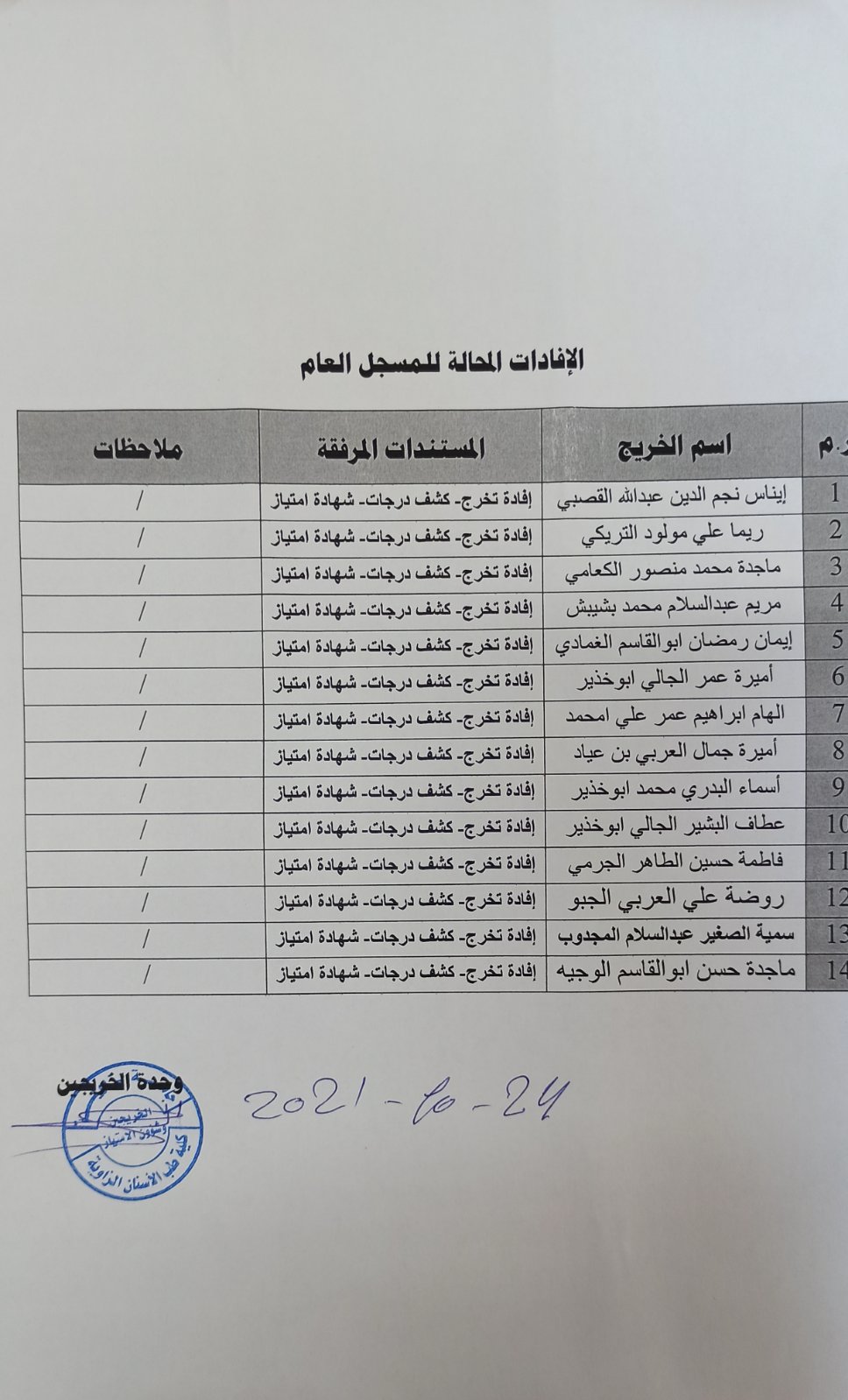 إعلان.. علي الطلبة الخريجين المذكوره أسمائهم في القوائم مراجعة مكتب المسجل العام بالجامعة.. مكتب الخريجين بالكلية