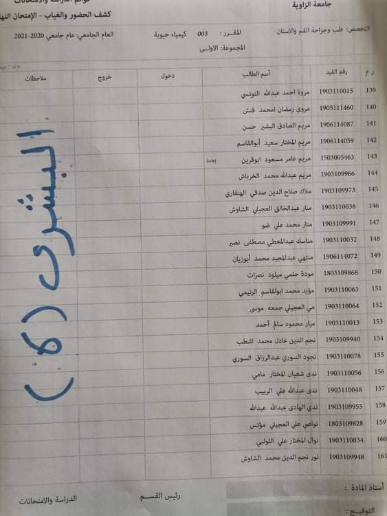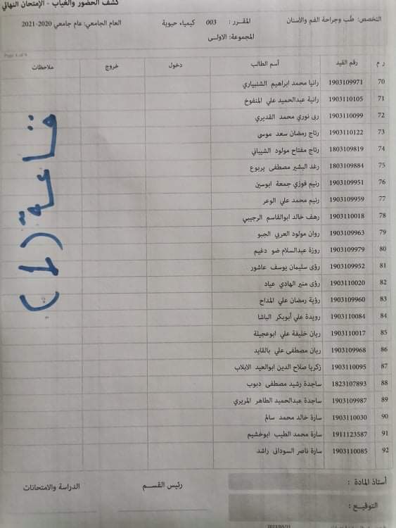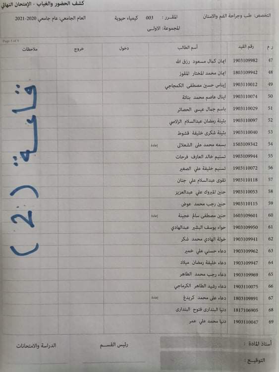 توزيع القاعات لامتحان الدور الاول لماده الكيمياء الحيوية ليوم الاربعاء الموافق23. 3 . 2022. علي الساعه تمام الساعة التاسعة يرجى الحضور قبل الامتحان بنصف ساعه