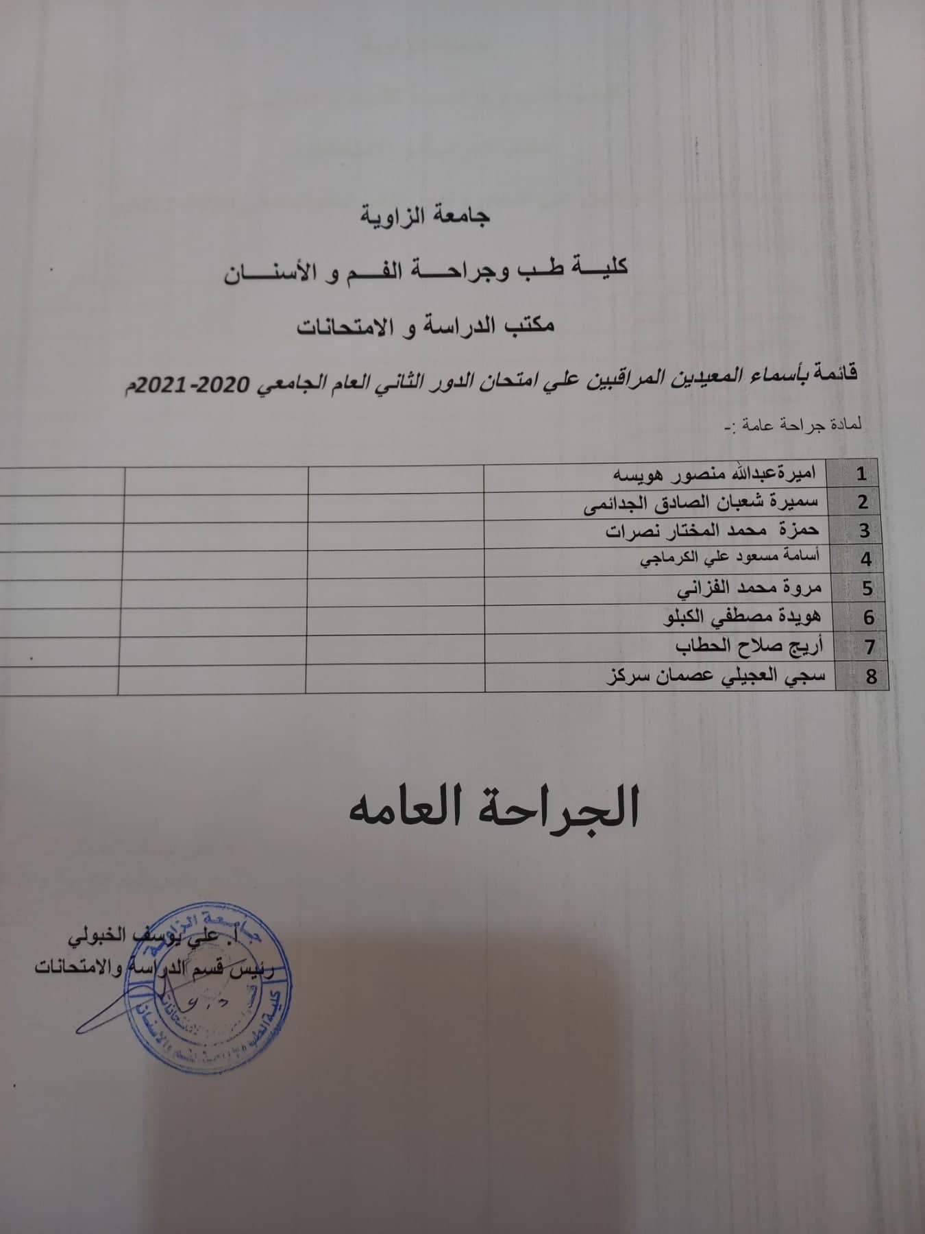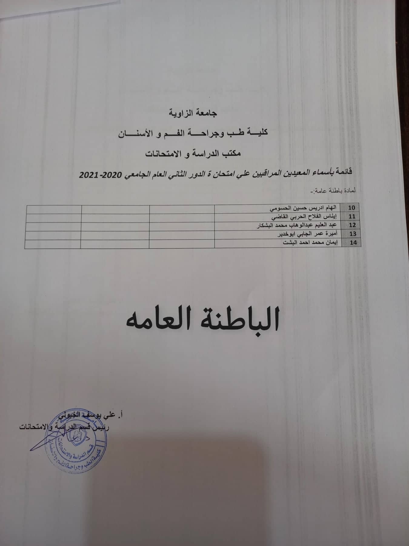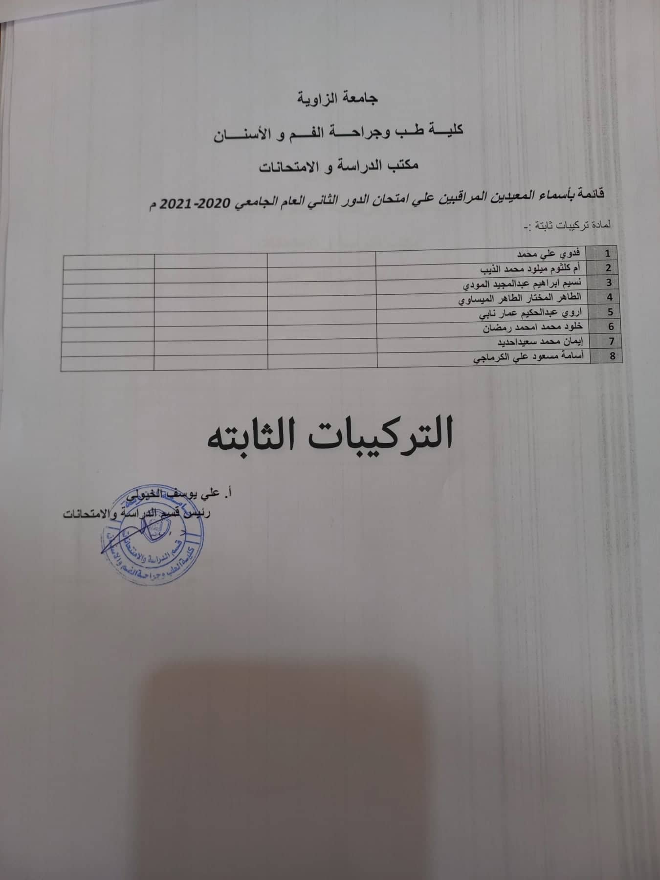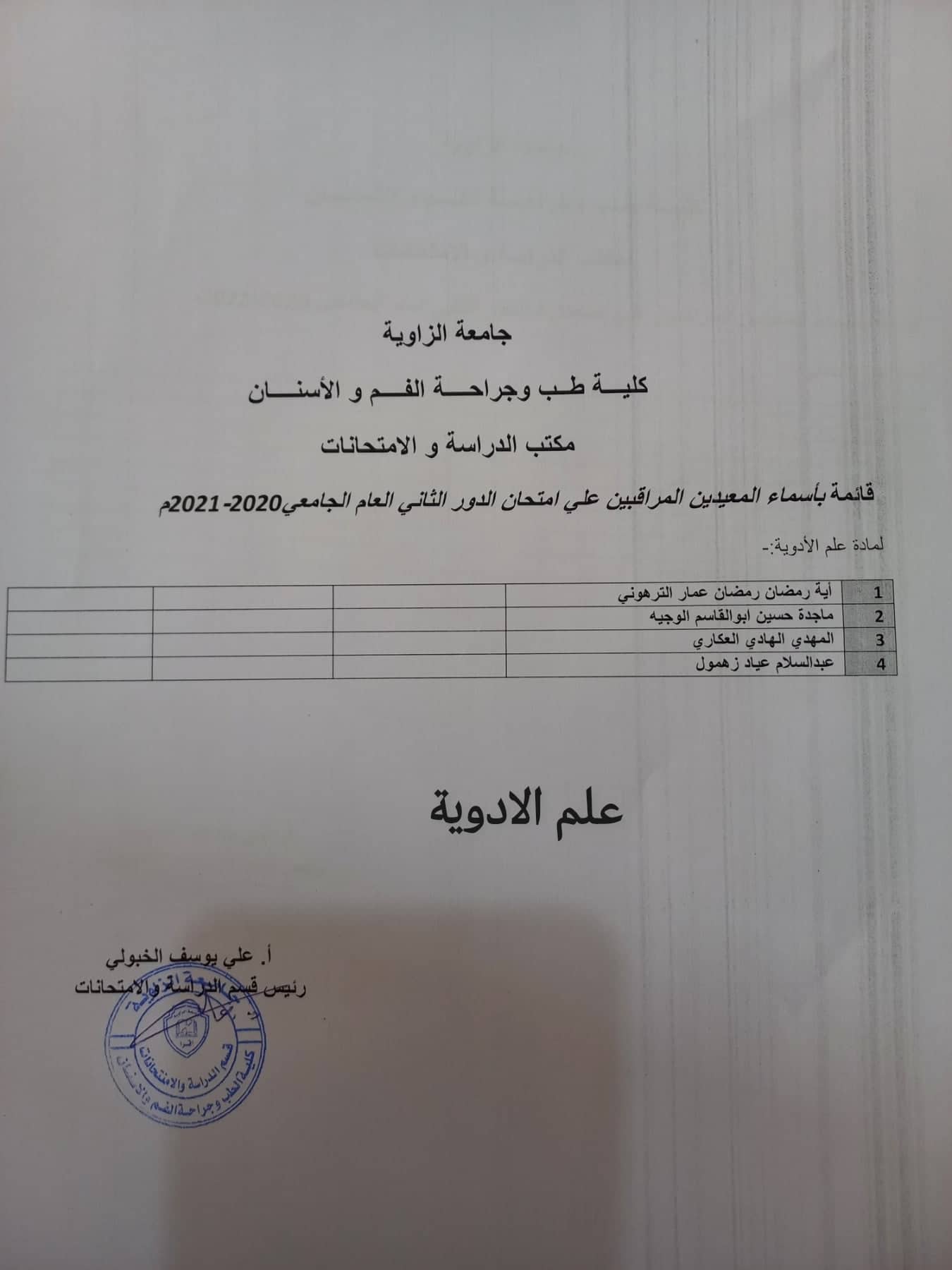 قوائم المعيدين المراقبين لامتحانات الدور الثاني لجميع السنوات يرجي الالتزام بالحضور بالموعد