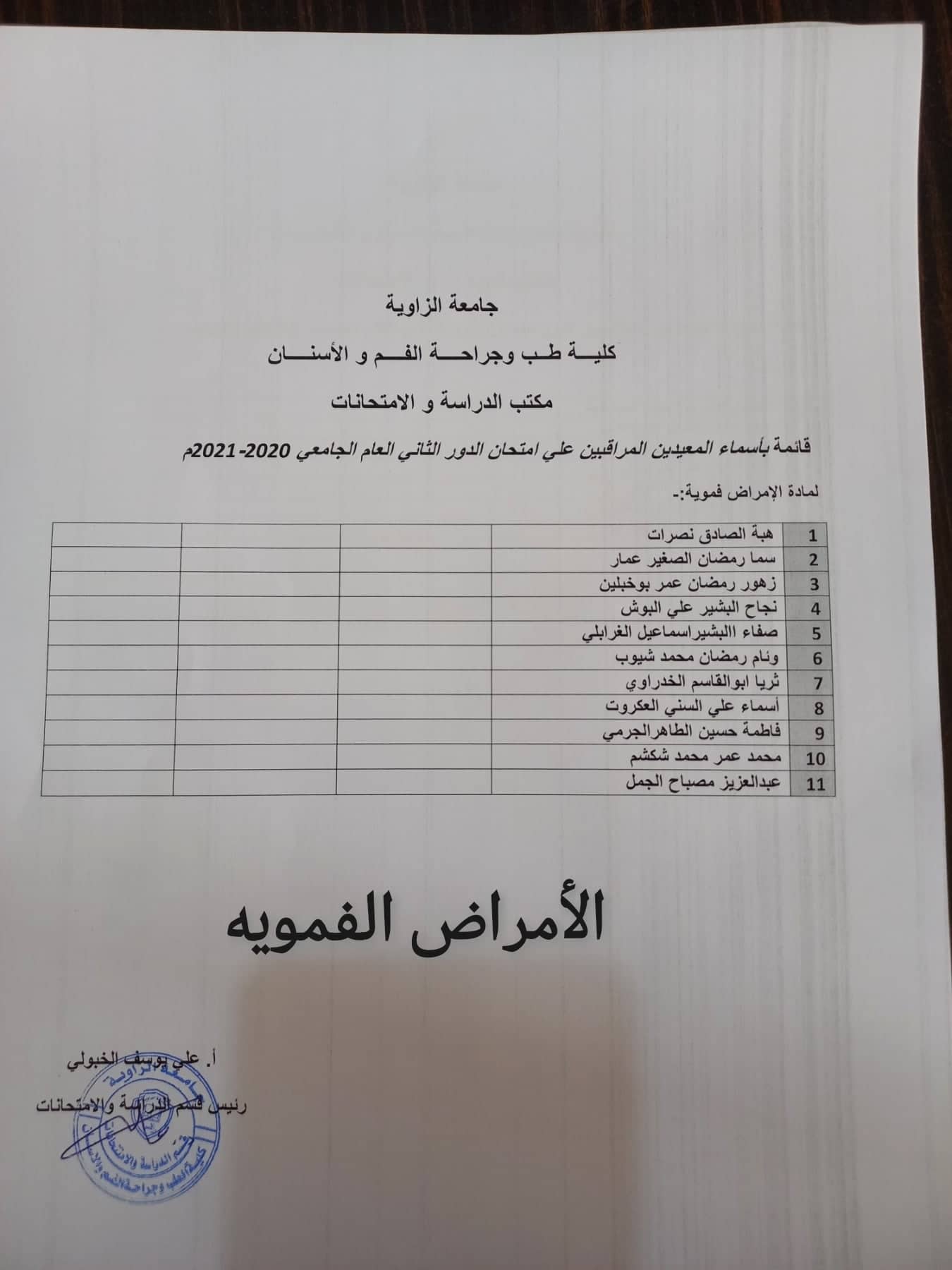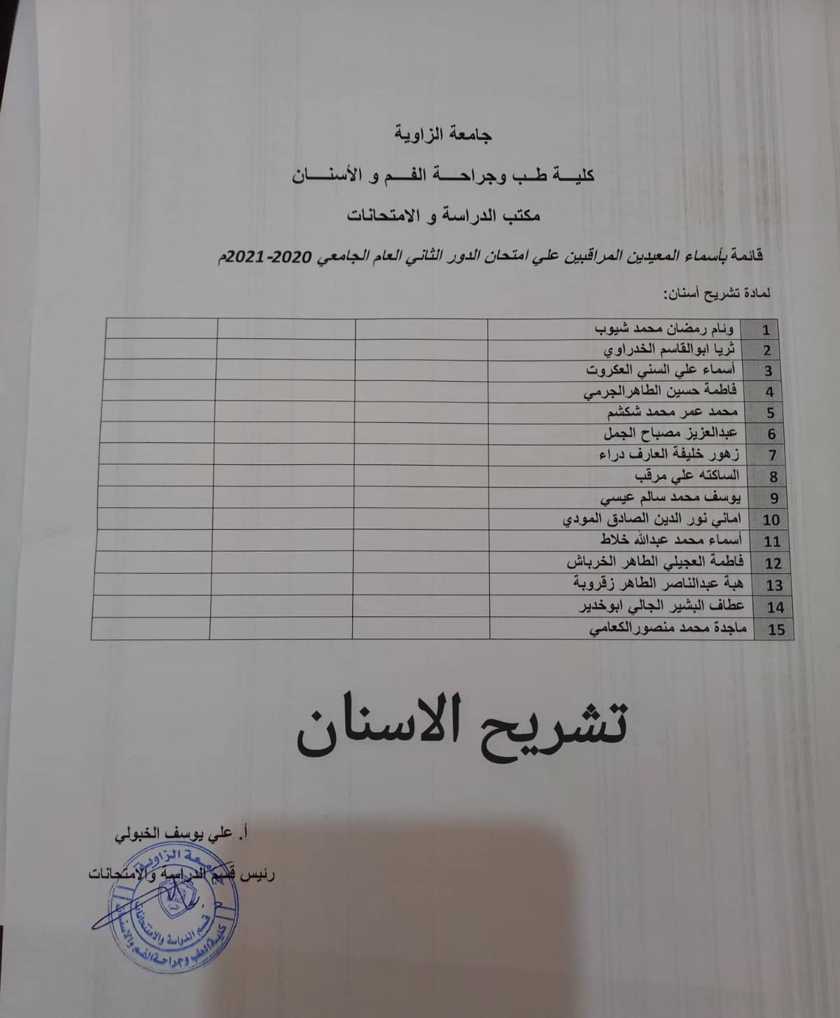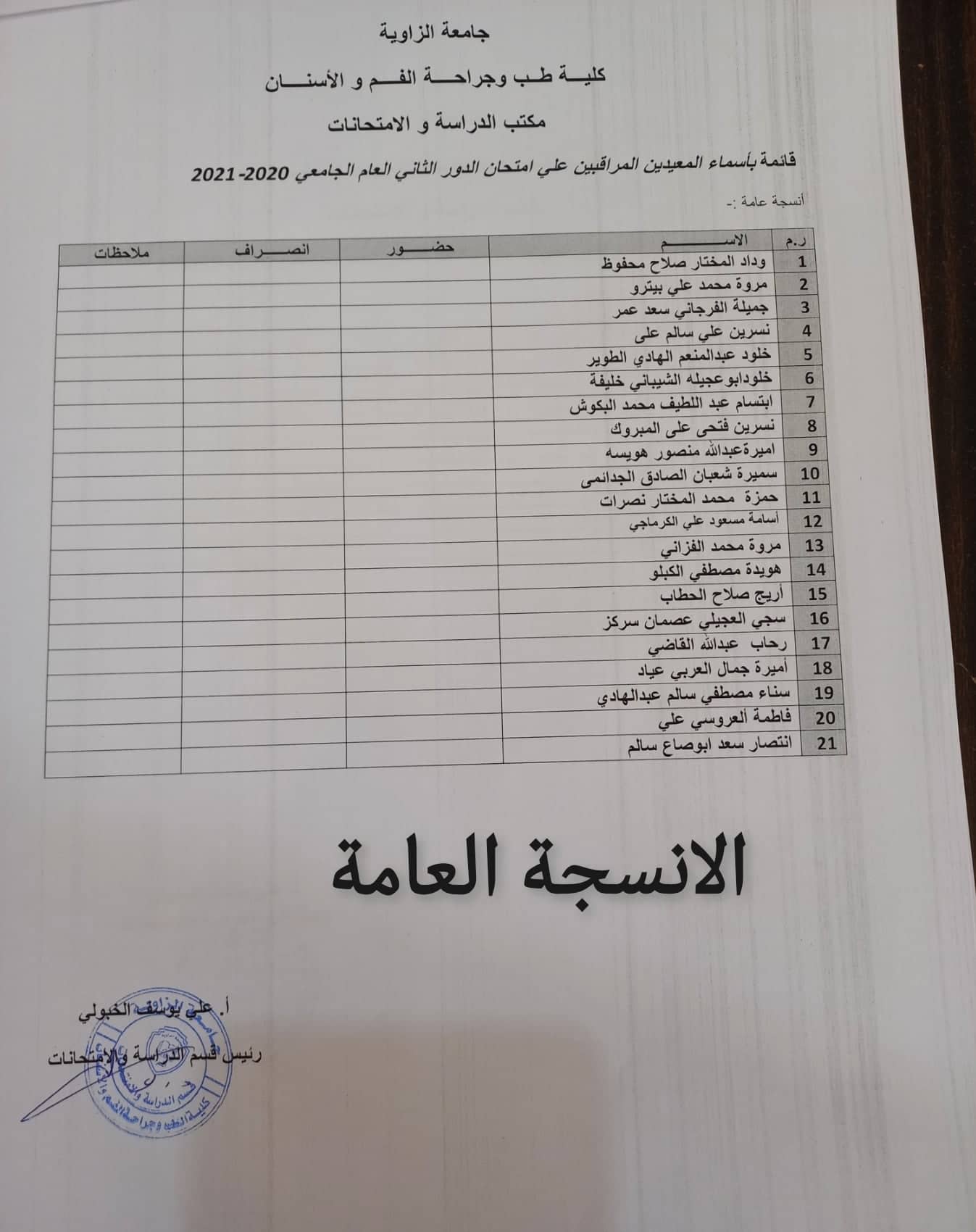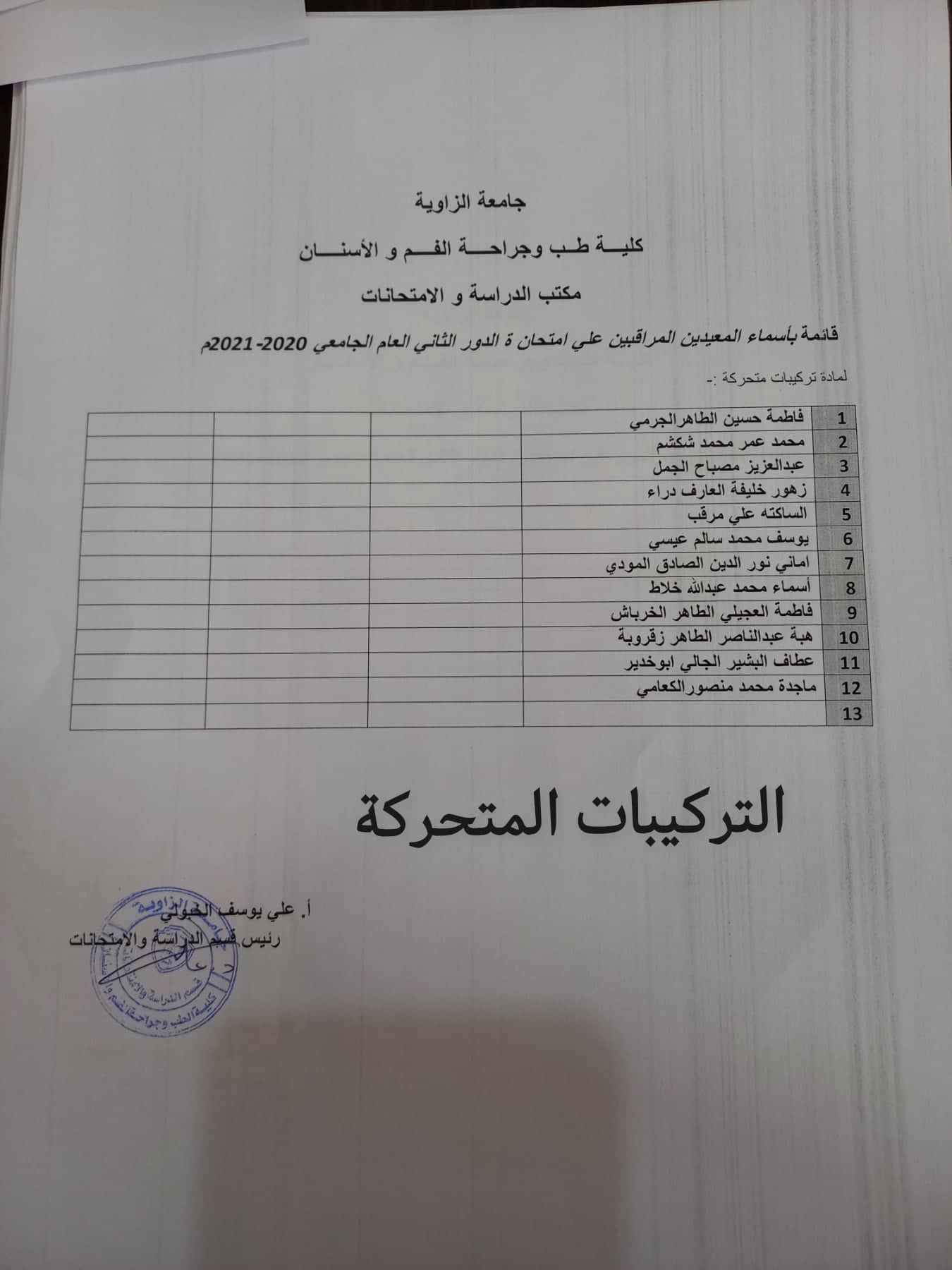 قوائم المعيدين المراقبين لامتحانات الدور الثاني لجميع السنوات يرجي الالتزام بالحضور بالموعد