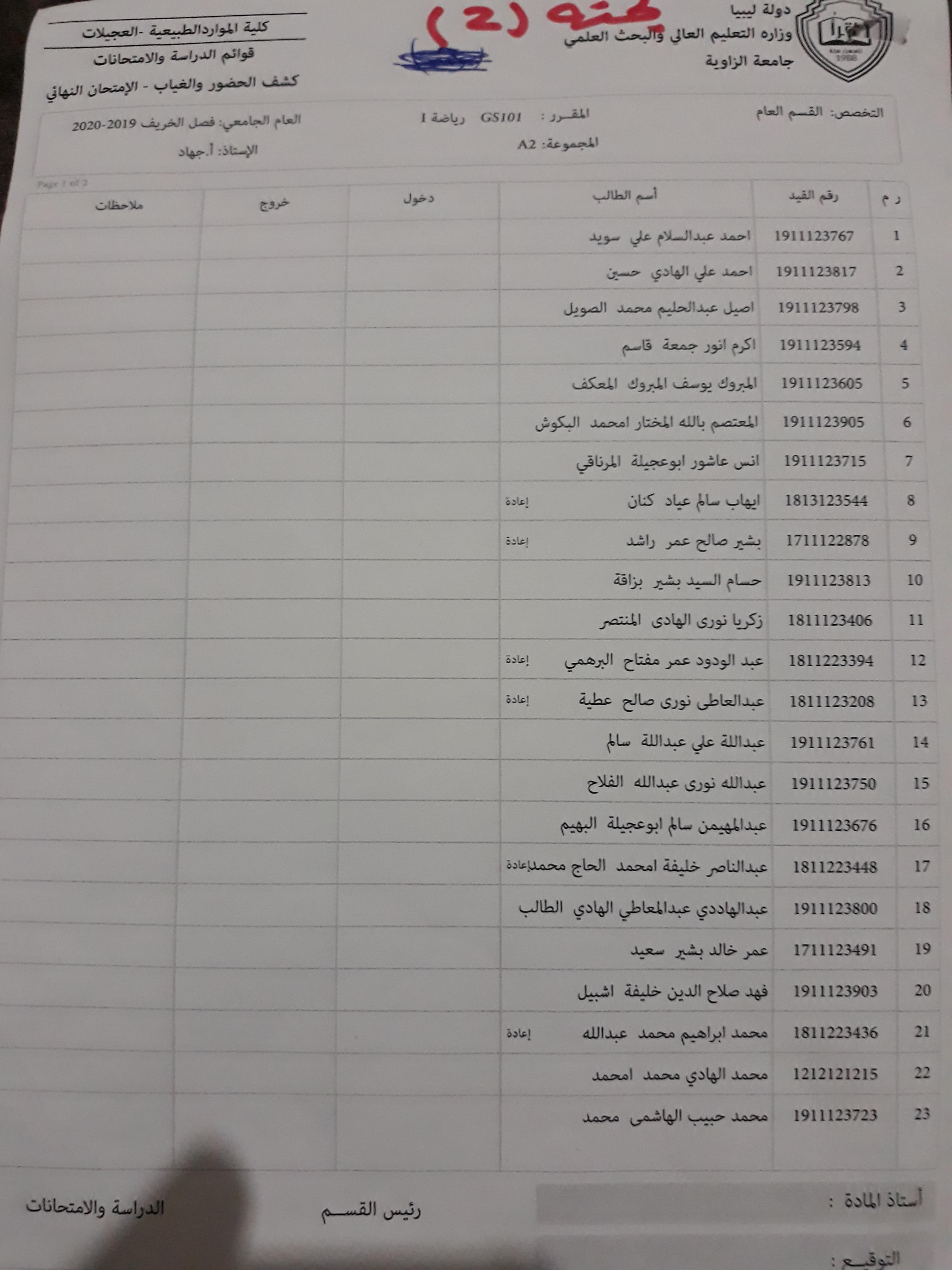 علي جميع الطلبة التقيد باللجان ولن يدخل اي طالب في لجنة غير موجود اسمه فيها