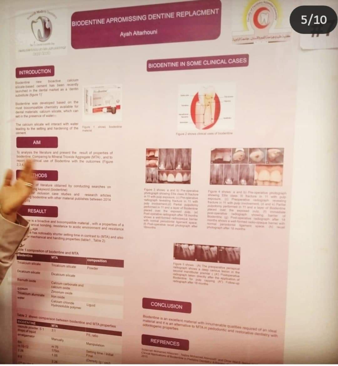 شهدت كلية طب وجراحة الفم والأسنان جامعة الزاوية بالتعاون مع نقابة أطباء الأسنان بالزاويه وبإشراف لجنة البحث العلمي بكلية طب الأسنان انعقاد اليوم العلمي الاول #بالمركزالوطني للبحوث الطبية اليوم الخميس الموافق 28 / 11 /2019 برعاية شركة المورد للمعدات الطبية ،شركة فورمان وشركة الحي الجامعي ،،وتضمن العديد من النشاطات محاضرات علمية ومسابقة الملصق الحائطي للمعيدات بالكلية وتم تكريم المشتركات والفائزين بهذه المسابقة ، وأيضاً أقيم معرض لعرض المنتجات الطبية  والأدوات والمعدات الطبية الخاصة بطب الأسنان،، نسأل الله التوفيق والسداد في النشاطات القادمة