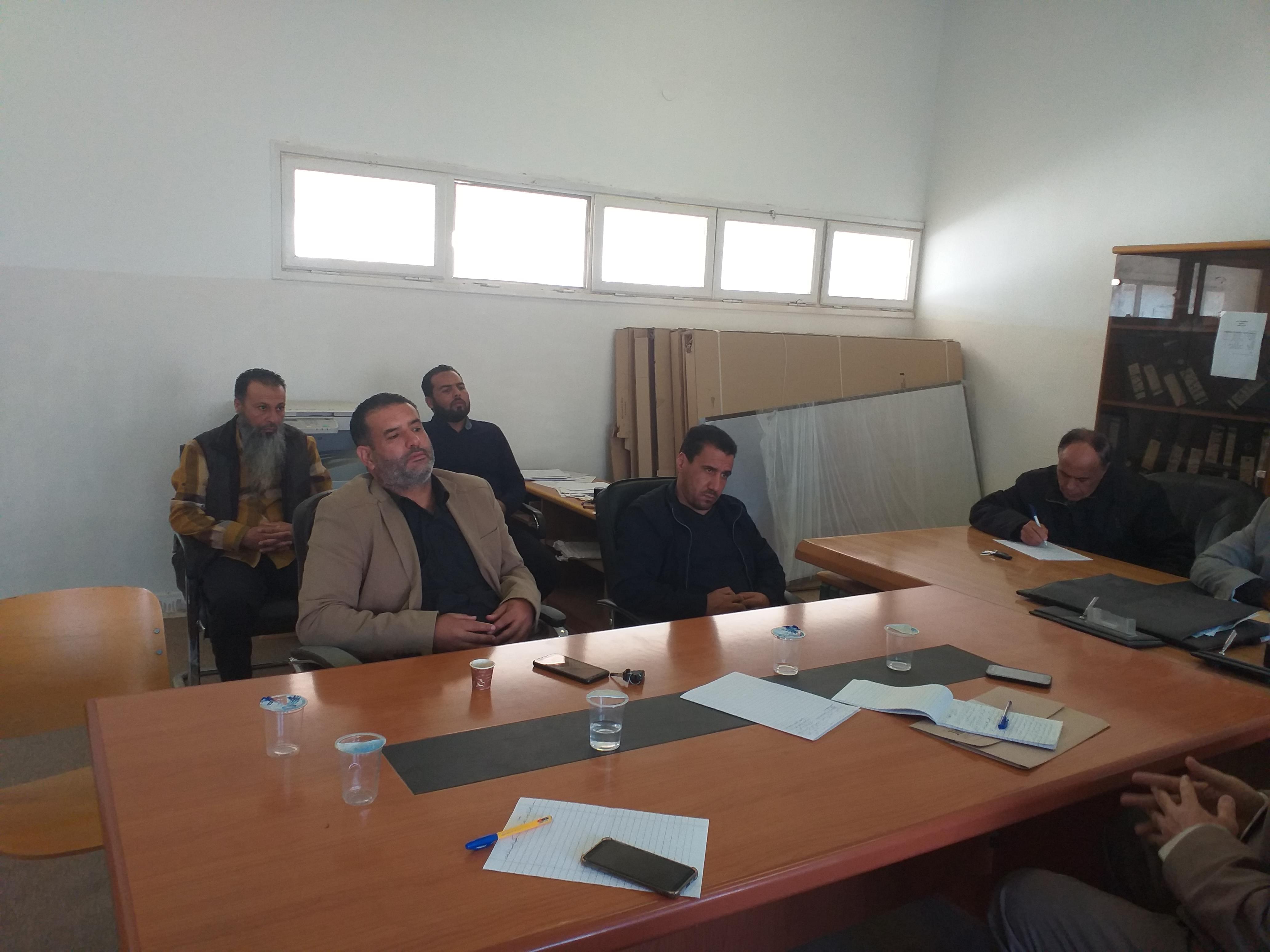 عقد اجتماع يوم الثلاثاء 10-12-2019 بالكلية بناء على طلب من العميد بخصوص بداية العام الدراسي وقد طلب نقيب اعضاء هيئة التدريس بالكلية ورؤساء الاقسام بالكلية عدم بداية الدراسة هذا الاسبوع واتفق الجميع أن يكون هناك اجتماع الثلاتاء القادم في حال وجود أي مستجدات بالخصوص
