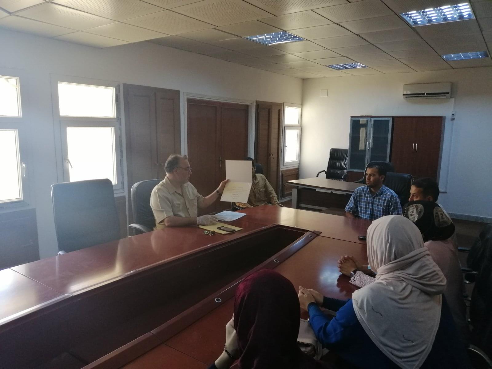 بحضور نجلي المرحوم الأستاذ الدكتور الهادي المبروك الدالي عضو هيئة التدريس بقسم التاريخ كلية التربية جامعة الزاوية (مصعب و المعتصم بالله ), قام خريجي الدفعة الثالثة بقسم التاريخ بكلية التربية و بحضور أعضاء هيئة التدريس بالقسم بتكريم المرحوم الاستاذ الدكتور الهادي المبروك الدالي و تقديم شهادة تقدير و احترام حباً ووفاءاً. و قد ألقي الدكتور رمضان الجامع كلمة بهذه المناسبة رحب فيها بنجلي المرحوم و أشاد فيها بمأثر المرحوم العلمية و الفكرية و ما كان له من أثر طيب في حياة أبناءه الطلاب بالقسم بما قدمه من عطاء علمي متميز.