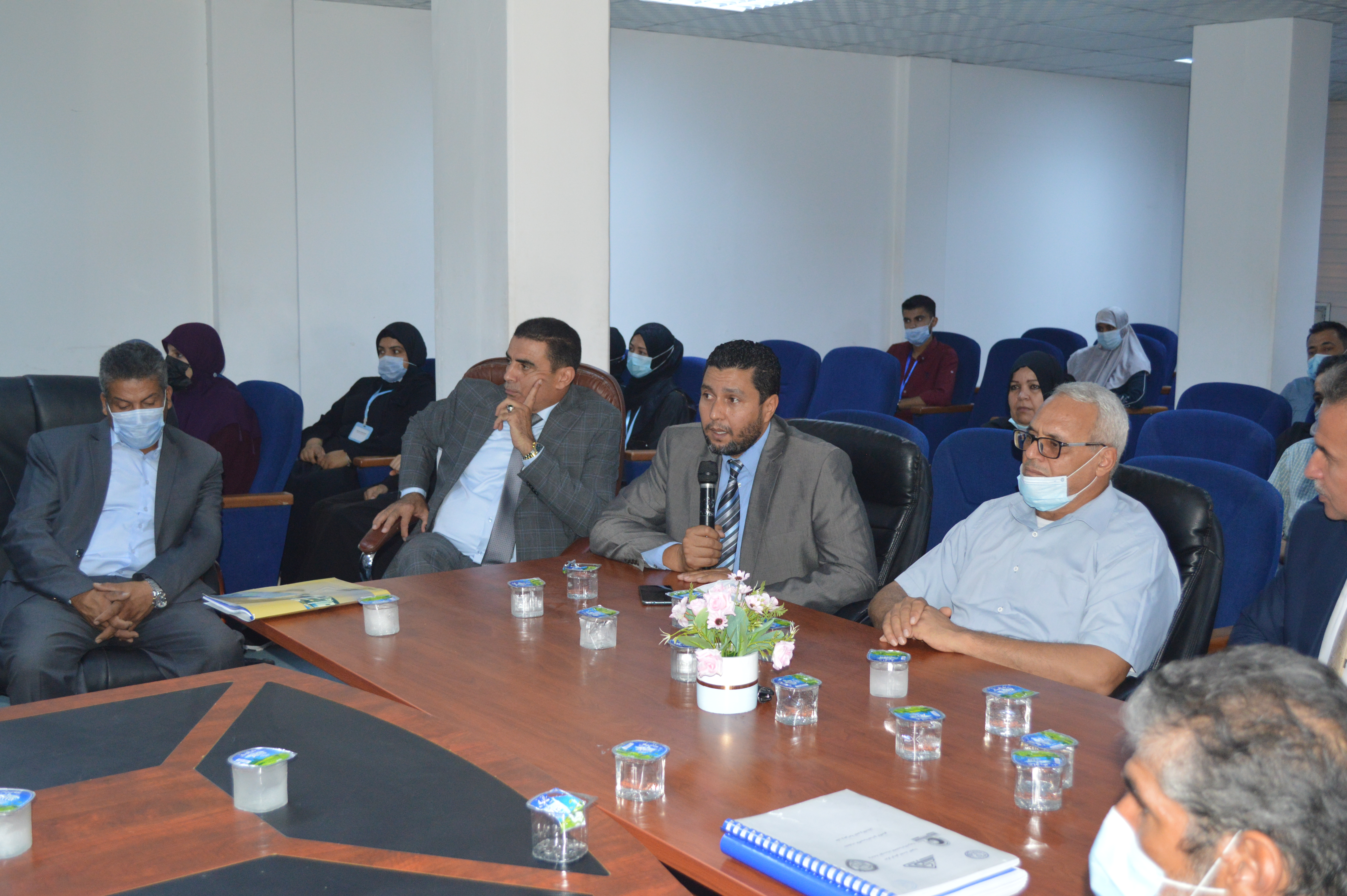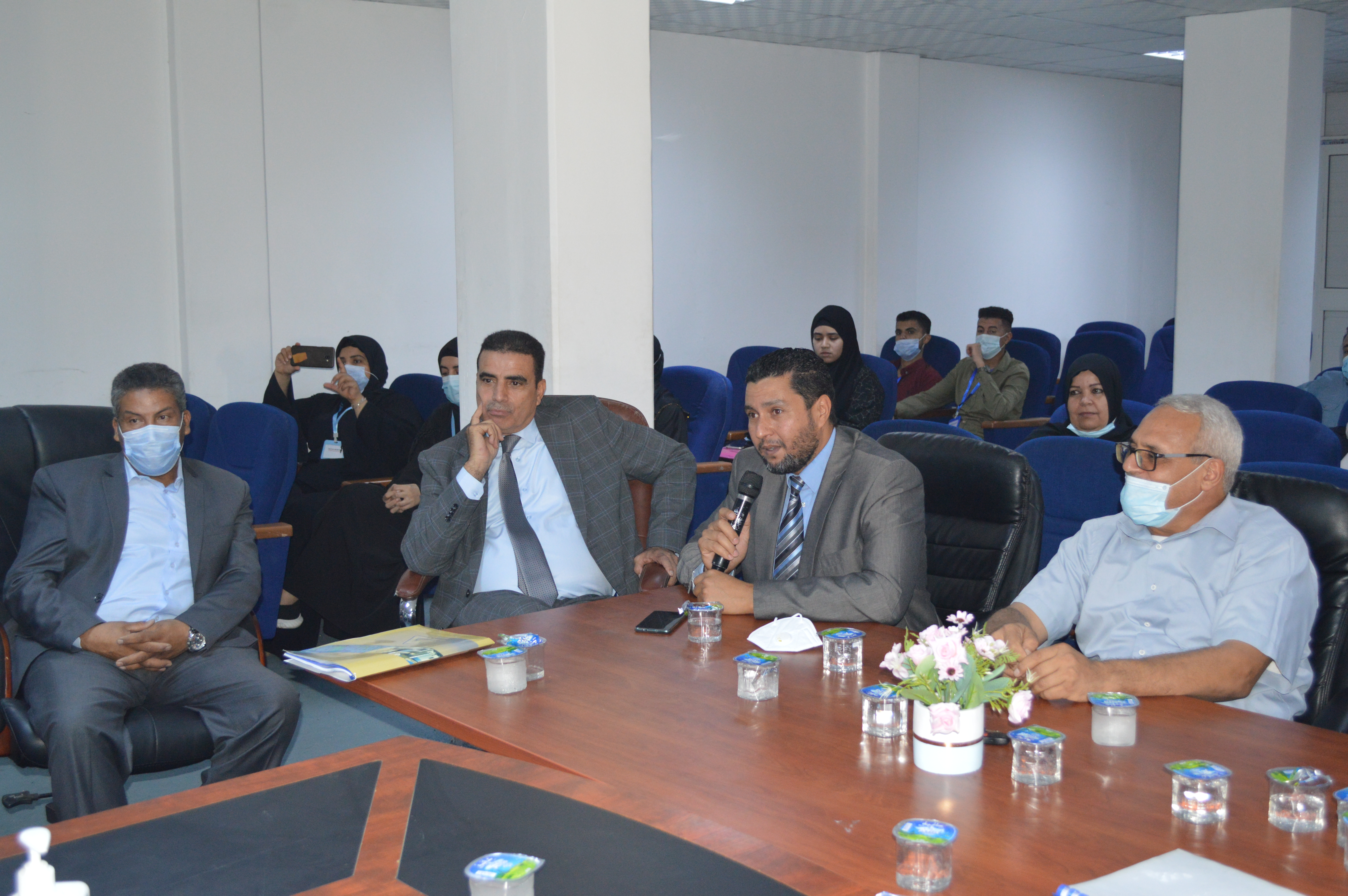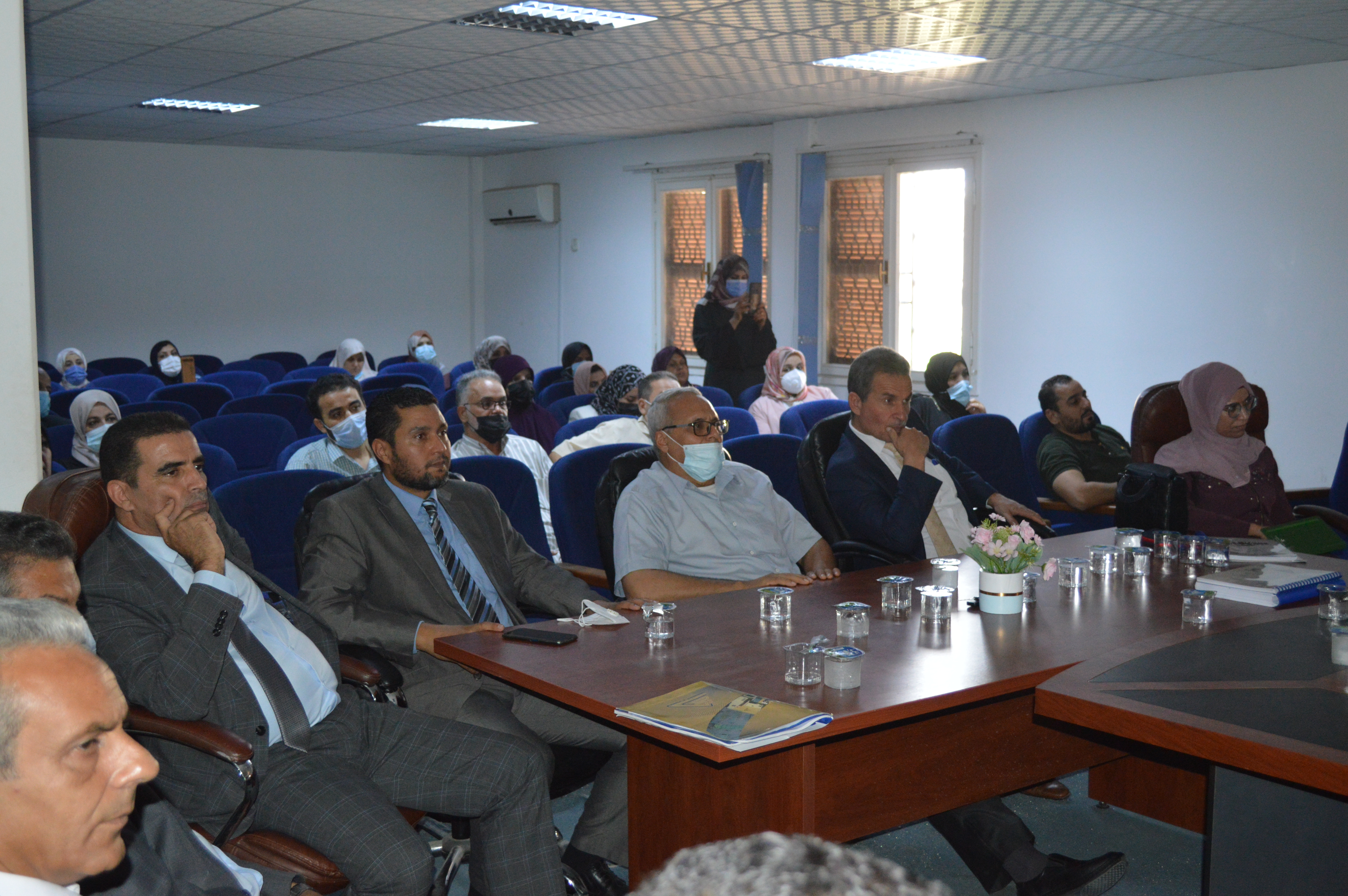 حضر الاجتماع السيد مدير إدارة ضمان الجودة بالمركز ا. د سالم الفرد. والسيد مدير إدارة الاعتماد ا. د عبدالمجيد شعبان، السيد وكيل الجامعة للشؤون العلمية ا د. محمود جدور. و السيد مسجل عام الجامعة د. حمزة كشلاف، و أعضاء هيئة التدريس بالكلية و الموظفين و الطلاب.
