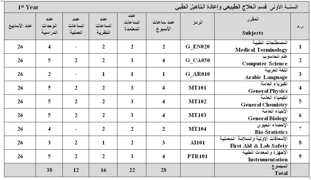 الجدول الدراسي للسنة الأولى للعام الجامعي 2021/2020م