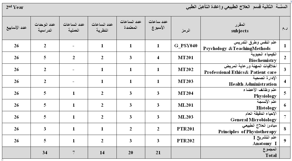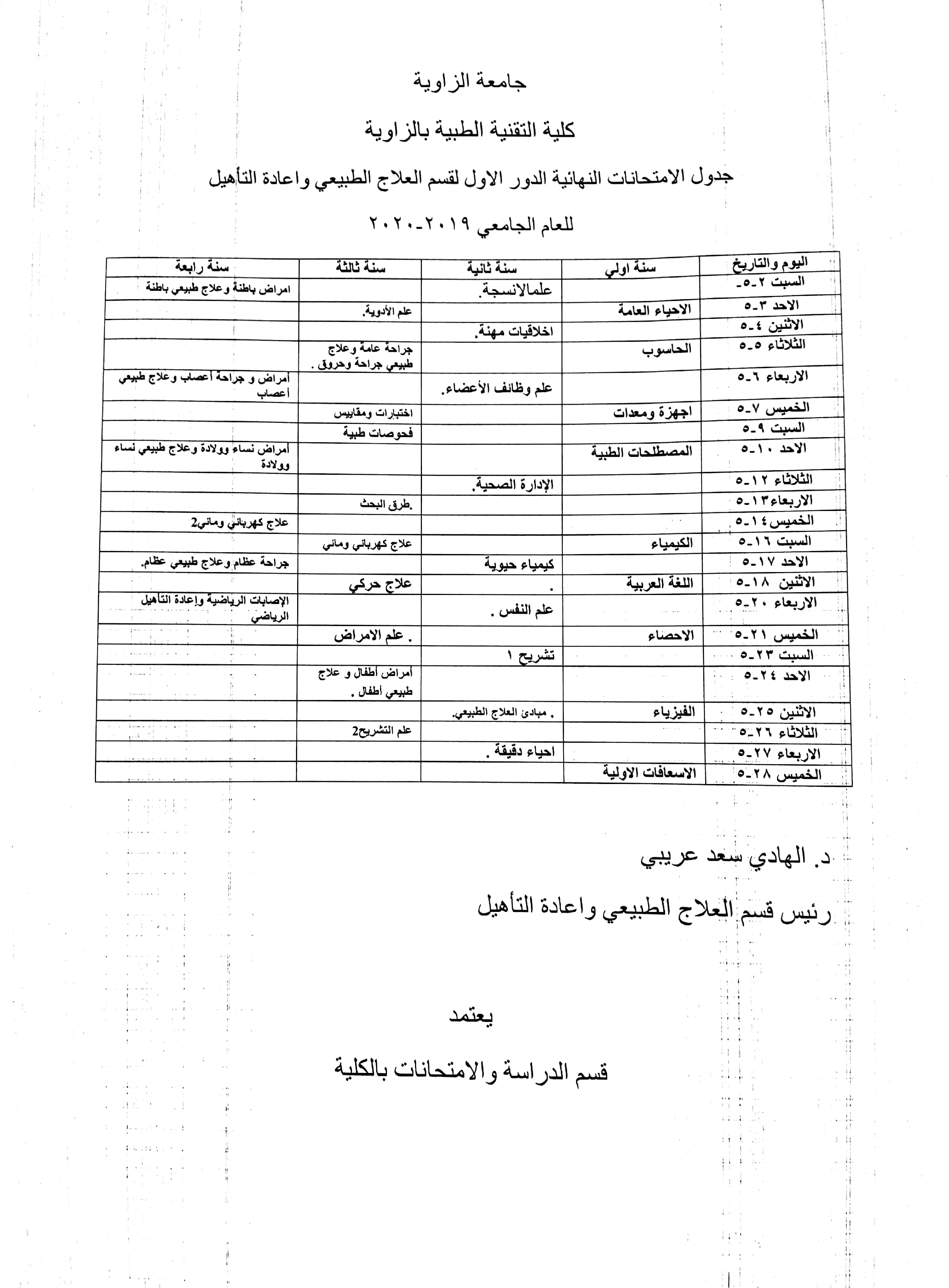 الجدول الدراسي للسنة الثانية للعام الجامعي 2021/2020م "المجموعة الأولى"