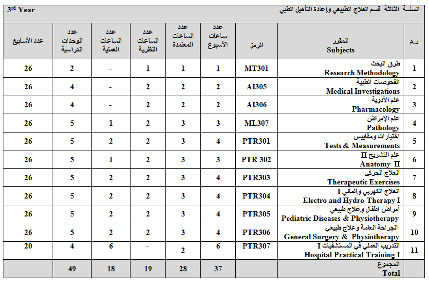 الجدول الدراسي للسنة الثالثة للعام الجامعي 2021/2020م
