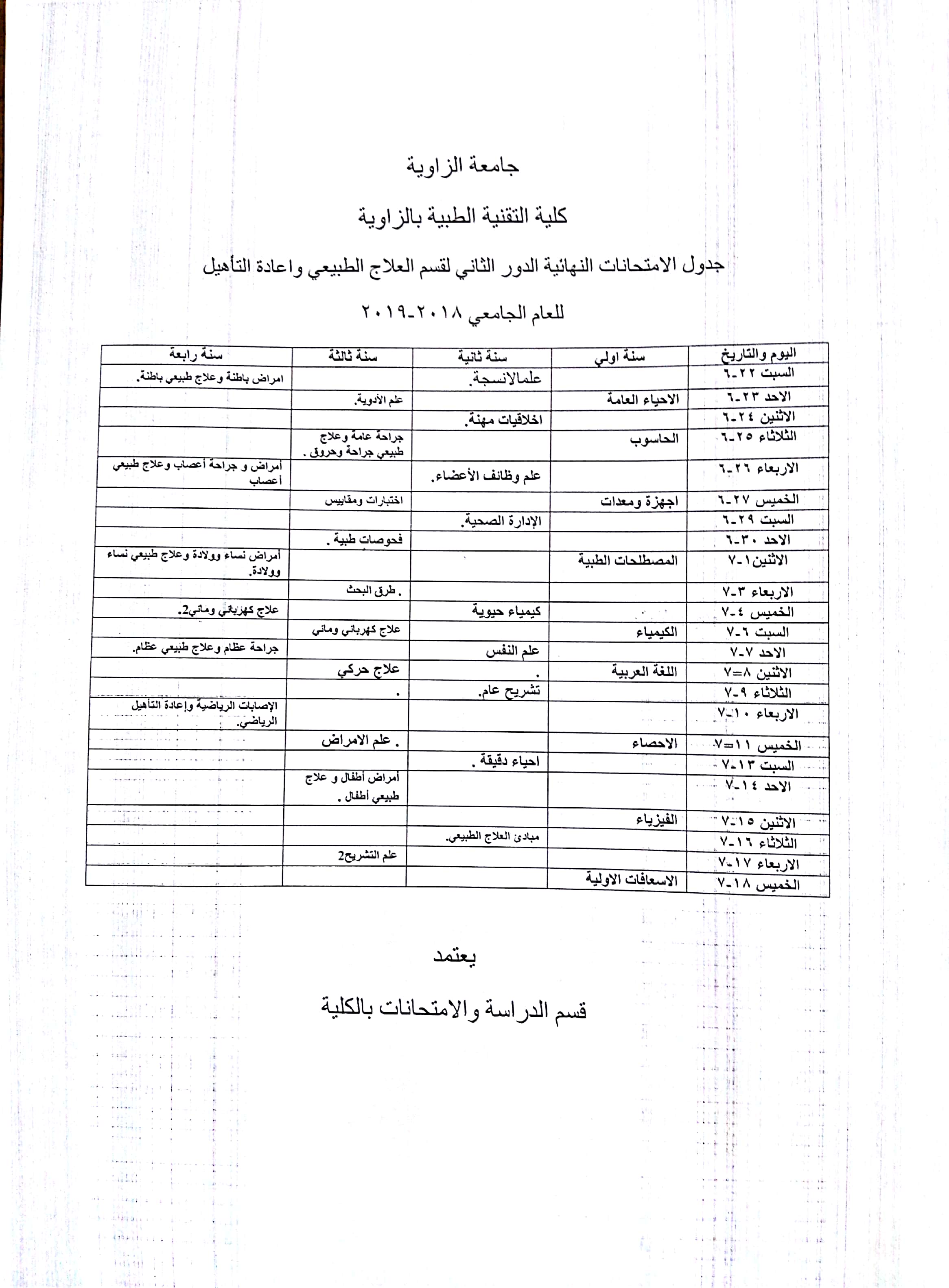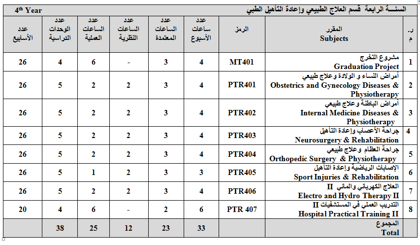 الجدول الدراسي للسنة الرابعة للعام الجامعي 2021/2020م