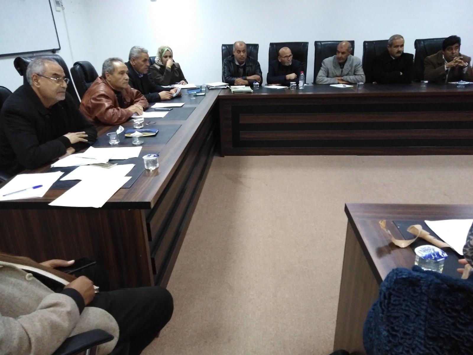 اجتماع مجلس الجامعة الأول لسنة 2020م المنعقد بقاعة مكتب التعاون الدولي ليوم الأحد الموافق 12/01/2020م , بشان متابعة سير العملية التعليمية بالكليات